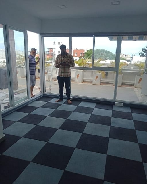 Rubber tile flooring laid for penthouse home gym setup at Chennai.